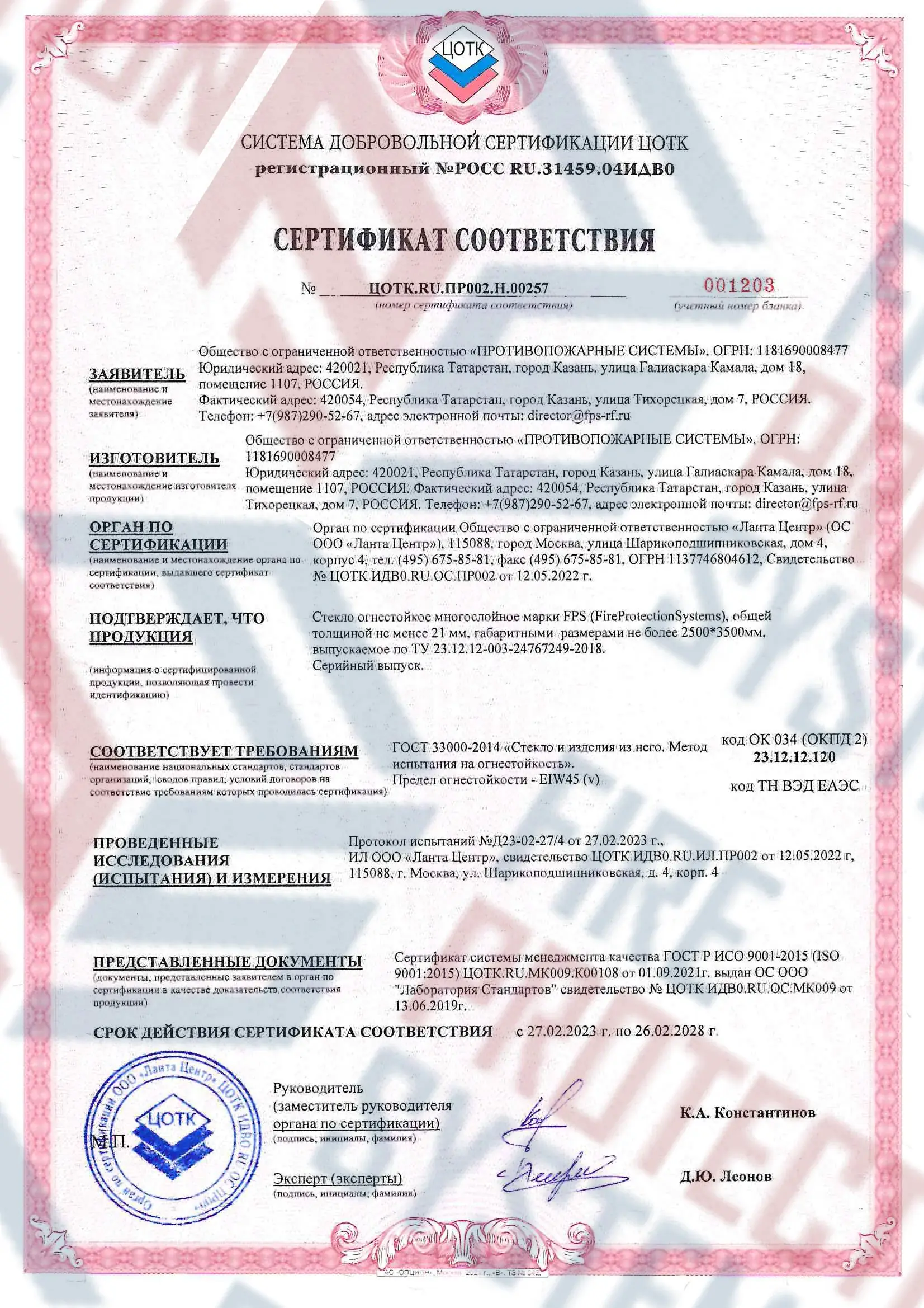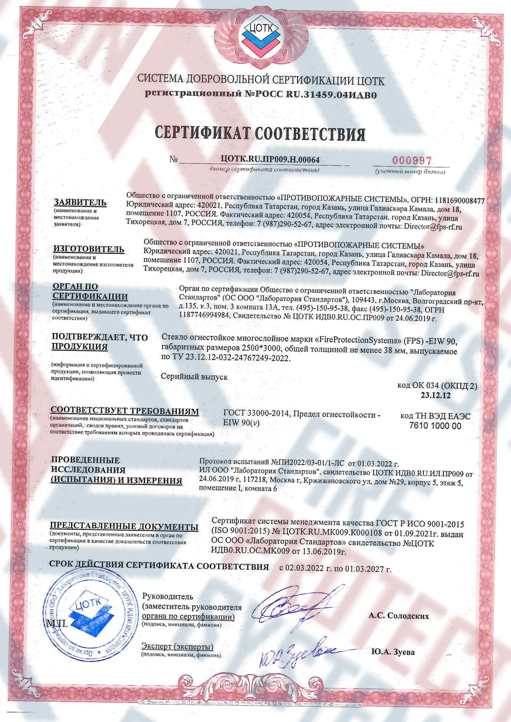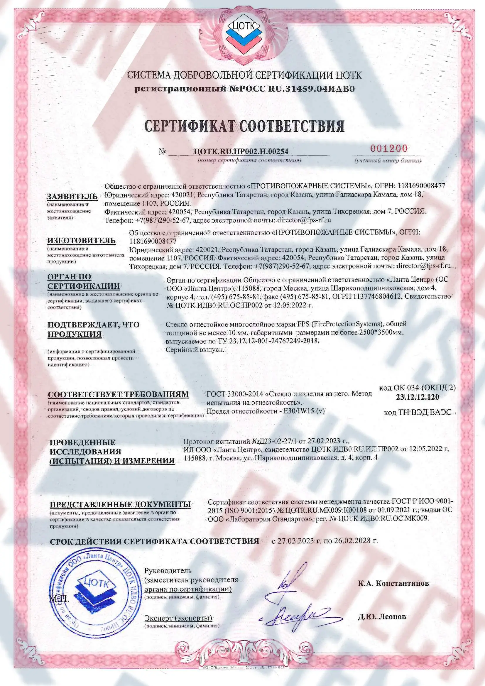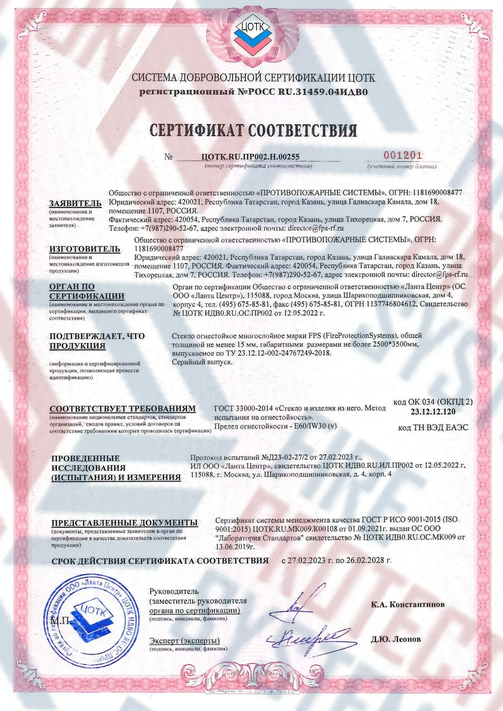 Сертифицировано по ГОСТ Р 53305-2009 и ISO 9001. Легко проходит экспертизу. Противопожарные конструкции: стекло, двери, перегородки, витражи – с гарантией до 5 лет. Компания «Fire Protection Systems» известна своим индивидуальным подходом к каждому клиенту, предлагая оперативную доставку, качественный монтаж и техническое обслуживание. Для заказа можно воспользоваться официальным сайтом, позвонить по номеру телефона 8 800 222 99 40 или отправить письмо на электронную почту office@fps-rf.ru.