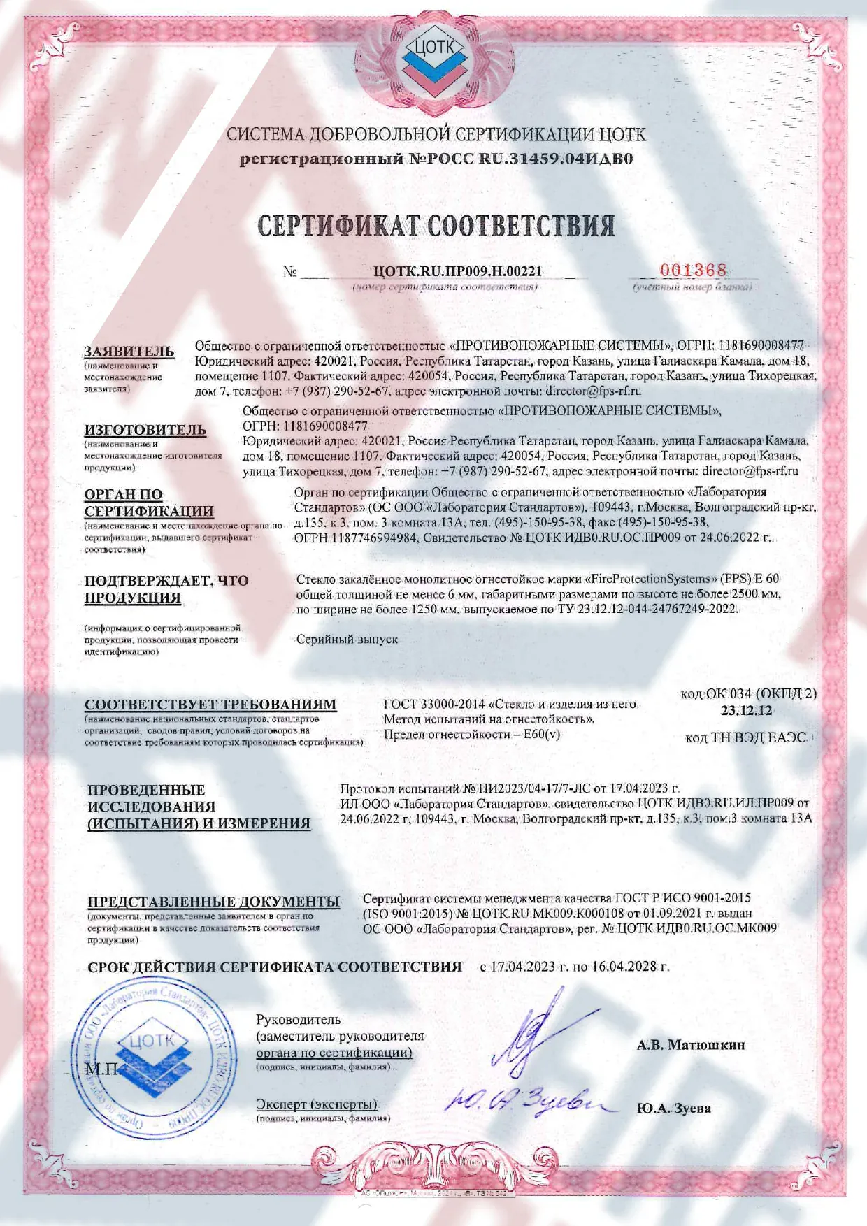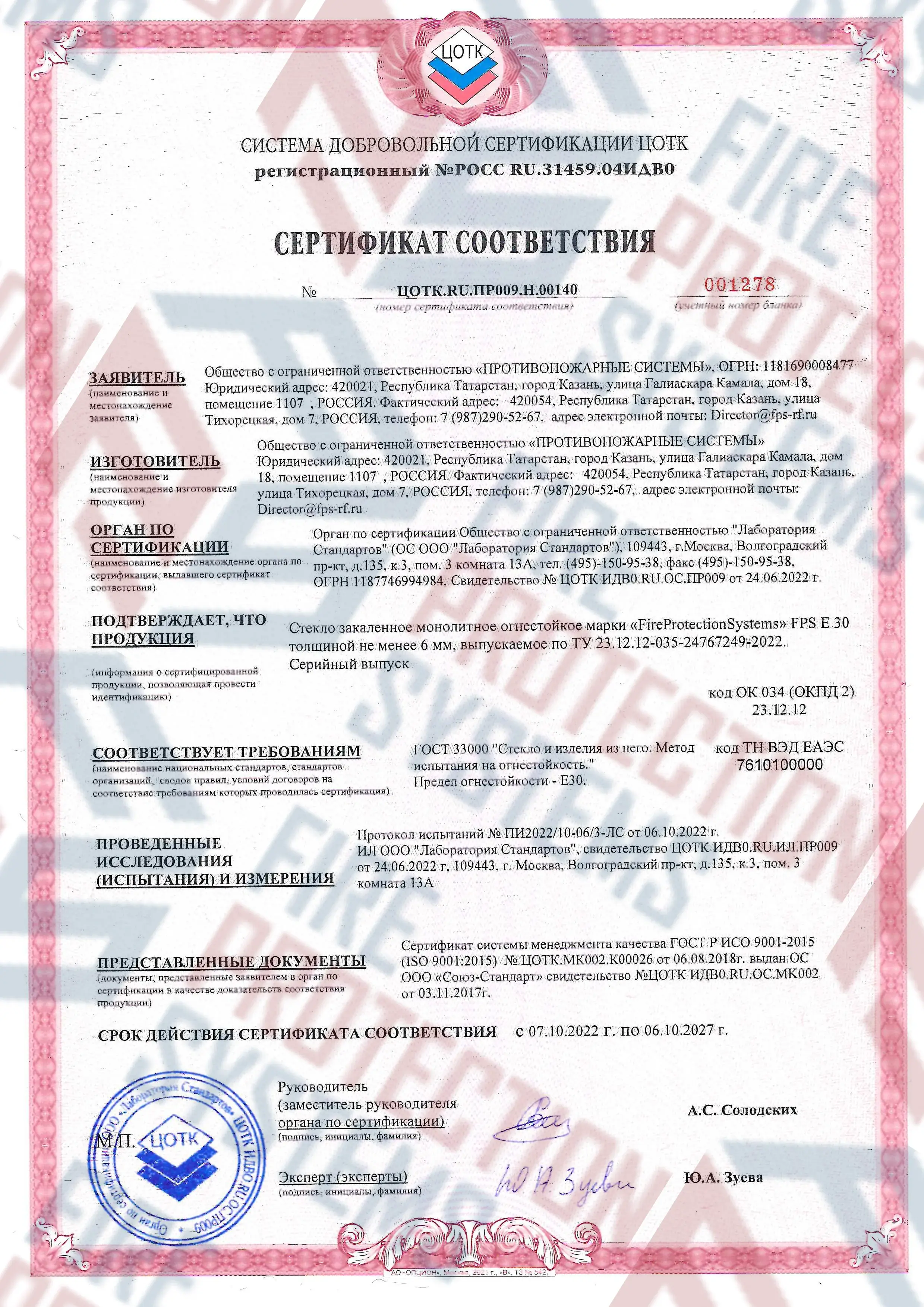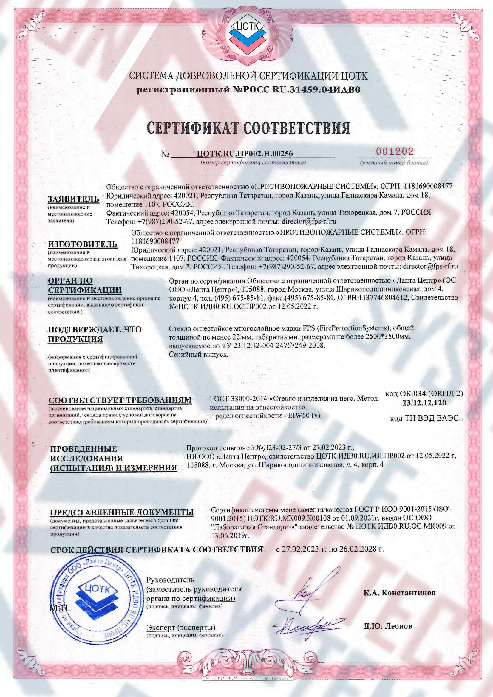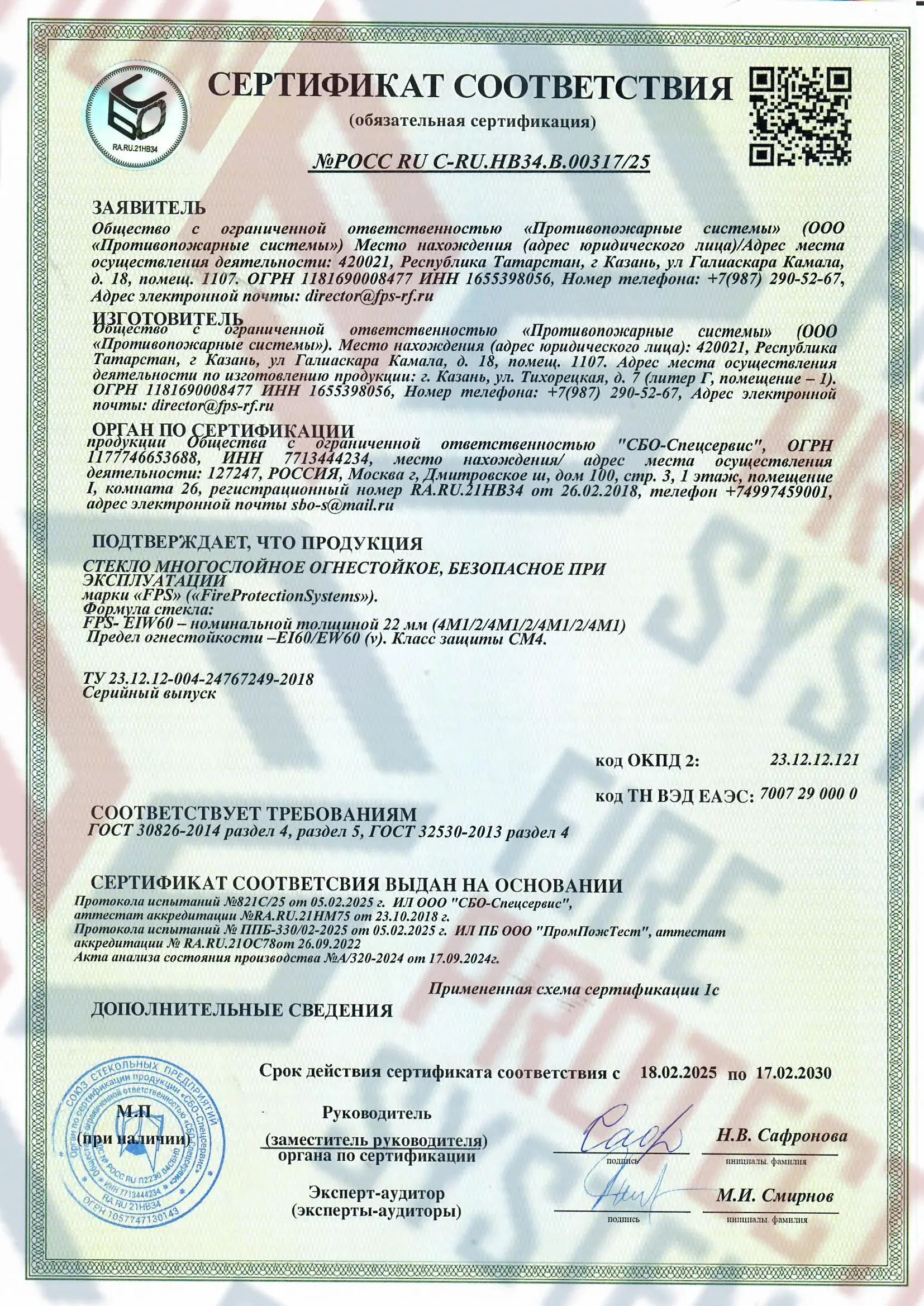 Сертифицировано по ГОСТ Р 53305-2009 и ISO 9001. Легко проходит экспертизу. Противопожарные конструкции: стекло, двери, перегородки, витражи – с гарантией до 5 лет. Компания «Fire Protection Systems» известна своим индивидуальным подходом к каждому клиенту, предлагая оперативную доставку, качественный монтаж и техническое обслуживание. Для заказа можно воспользоваться официальным сайтом, позвонить по номеру телефона 8 800 222 99 40 или отправить письмо на электронную почту office@fps-rf.ru.